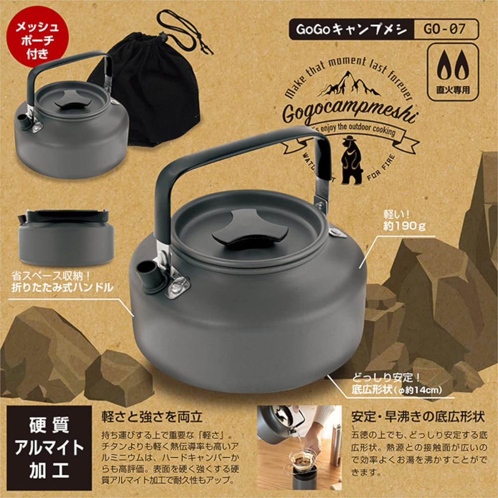 ケトル 1L 熱効率の良い平型のやかん ドリップケトル キャンプメシ キャンピング カクセー GO-07/4614x1個