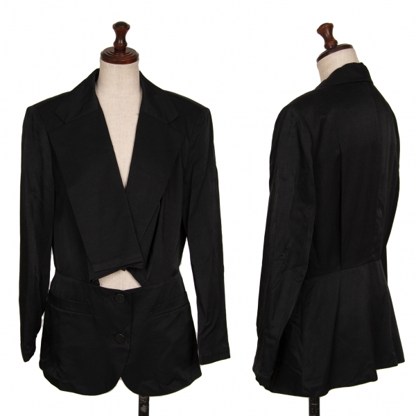 イッセイミヤケISSEY MIYAKE 切替カッティングコットンレーヨンジャケット 黒M |