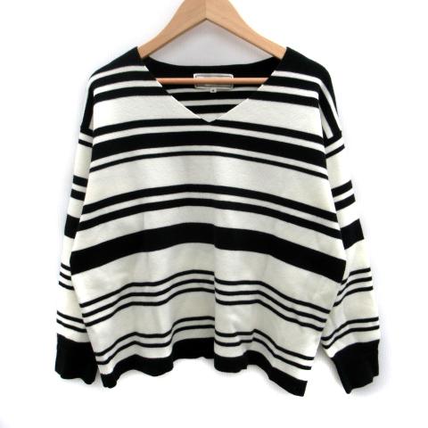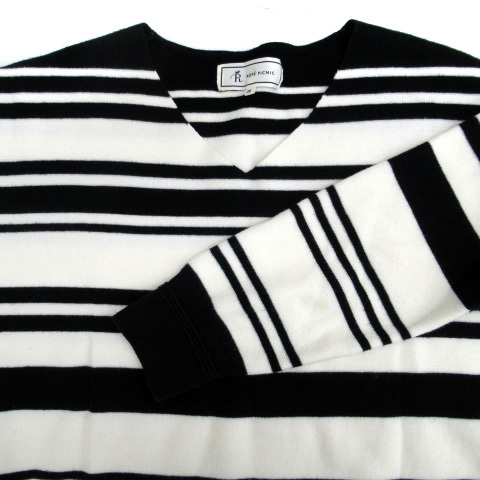 ロペピクニック ROPE Picnic ニット セーター 長袖 Vネック ボーダー柄 38 白 ホワイト 黒 ブラック /SM17 レディース