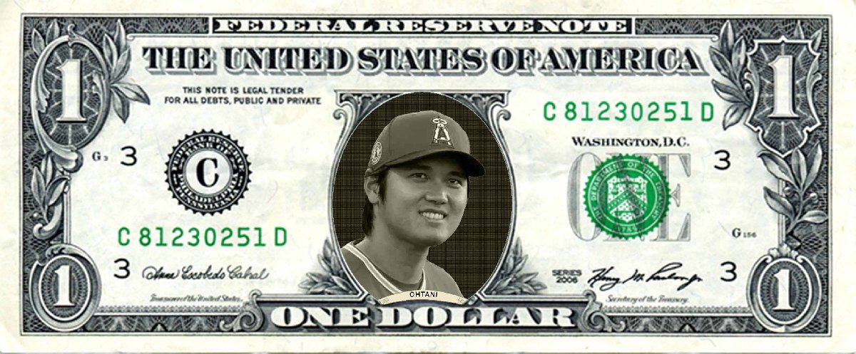 ロサンゼルス・エンゼルス プロ野球選手【 大谷翔平 】の本物の1ドル札 になります!★