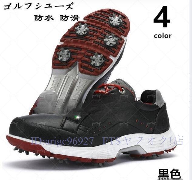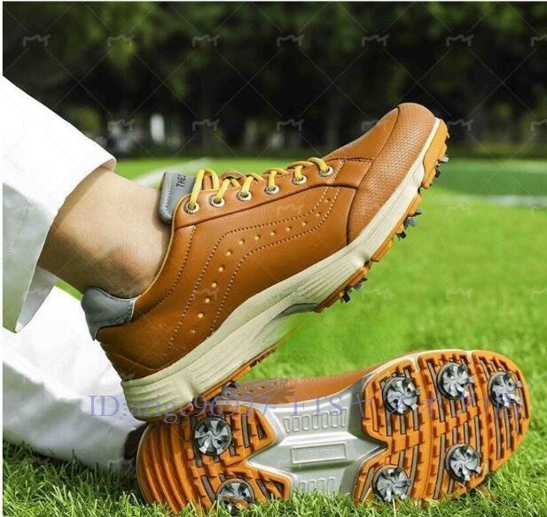 A7532★新品メンズ ゴルフシューズ メンズ スニーカー 強いグリップ ソフトスパイク アウトドアフシューズ 防水 防滑 耐磨 オレンジ