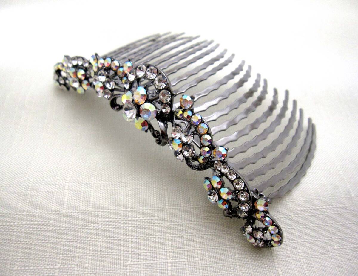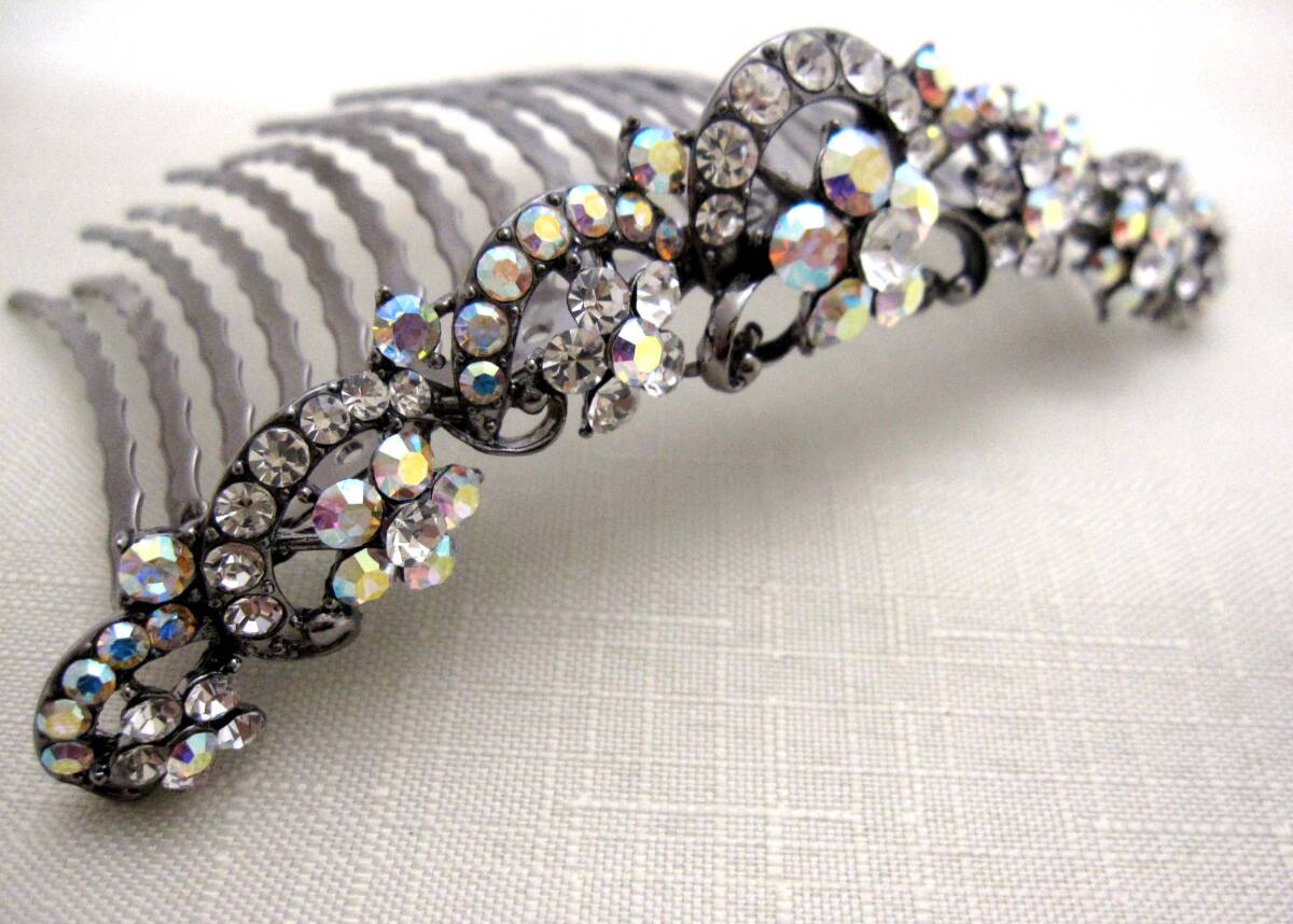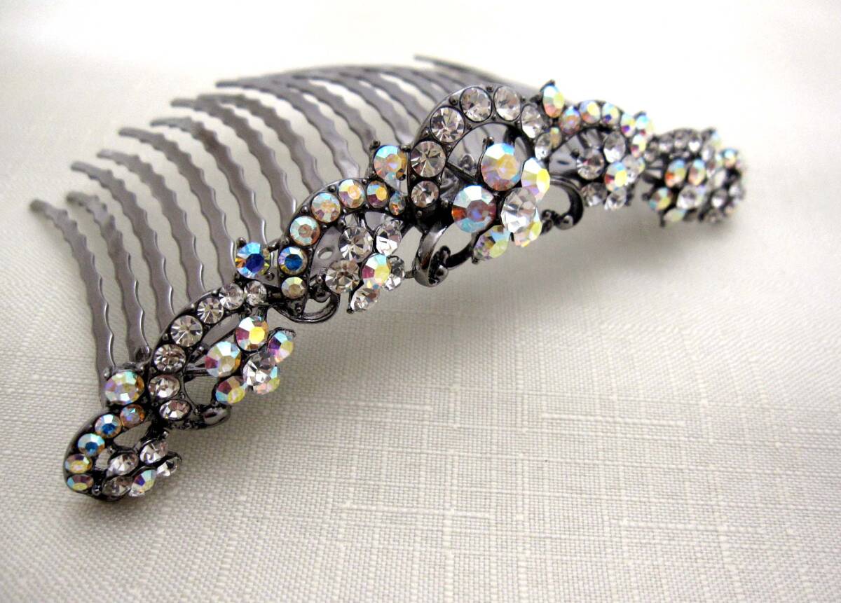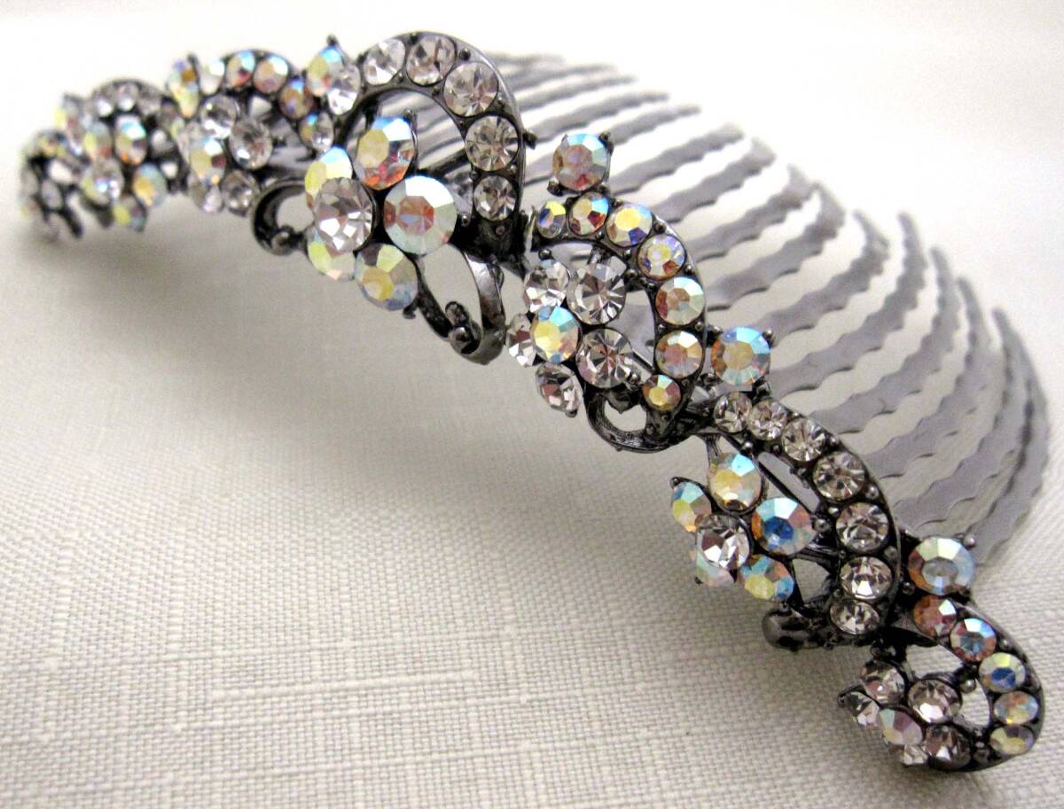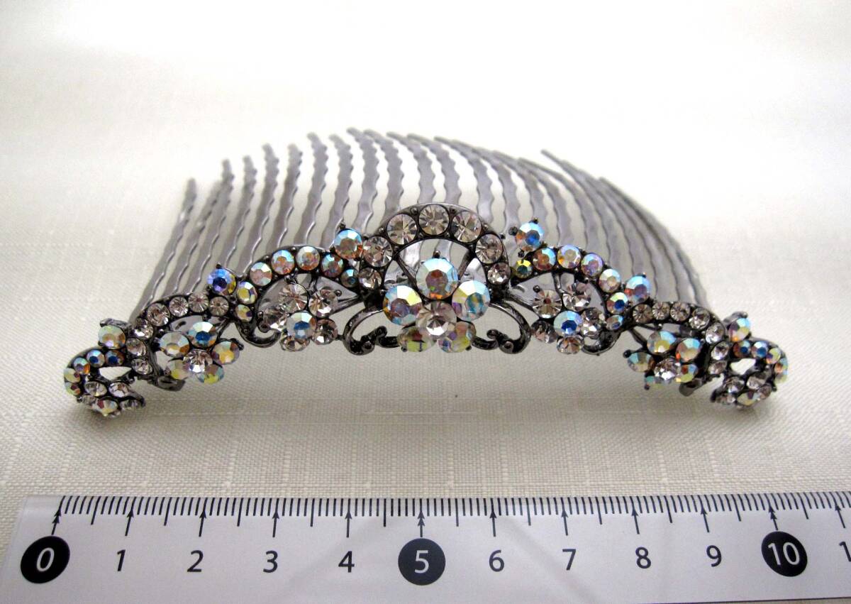 美品 夜会巻きコーム ホワイト系 ヘアアクセサリー*きらきら*髪飾り*和装*女子会*スワロ*ティアラ* 発表会<240201-2>