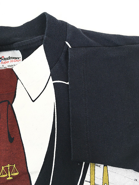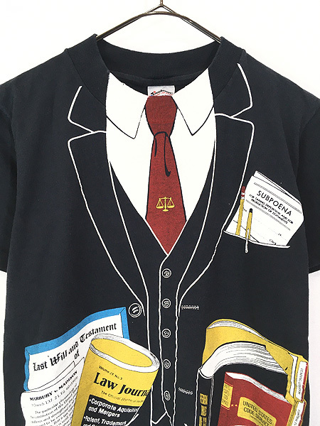 天秤のついたネクタイや本、令状までも細かなデザインです。袖シングルステッチ。
