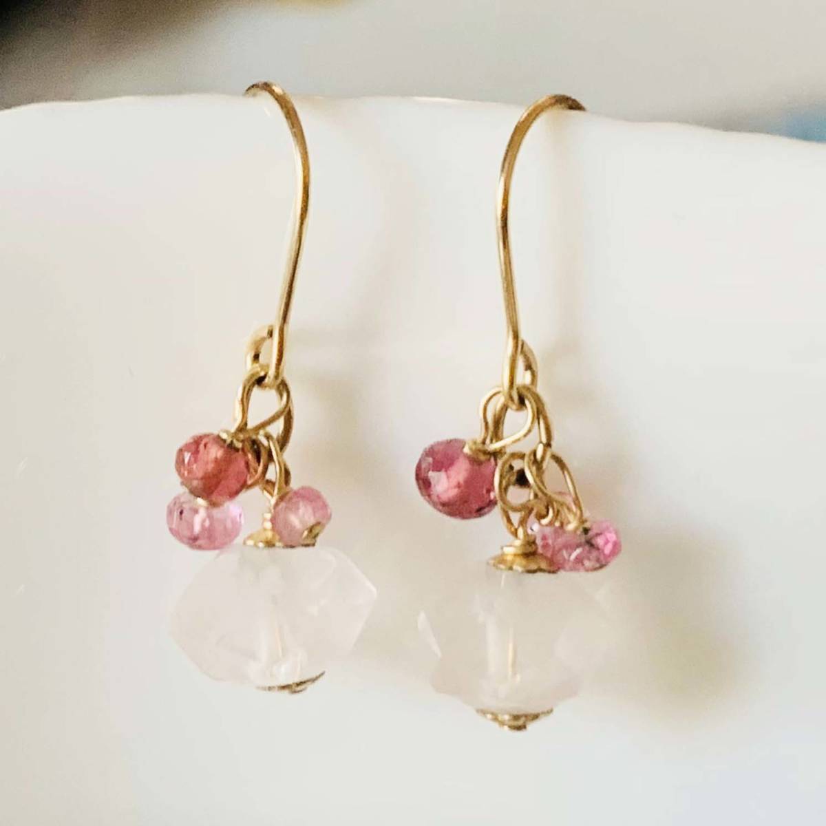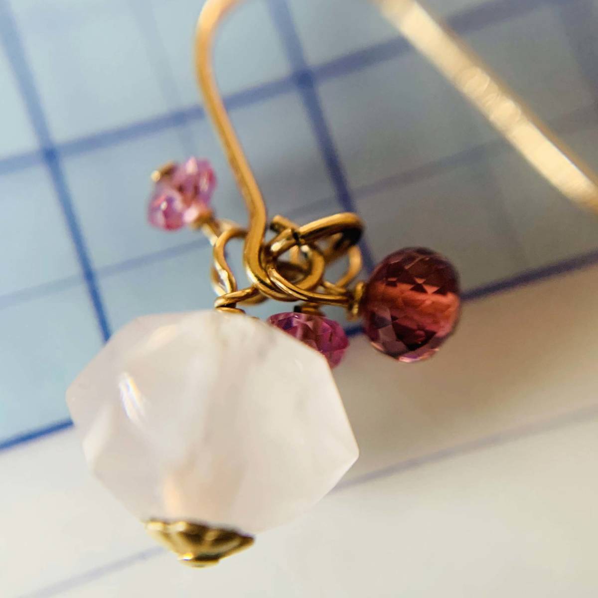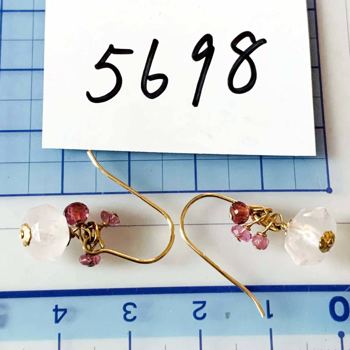 未使用に近い 天然トルマリン ローズクォーツ 1/20 14K刻印 金メッキ ピアス No.5698