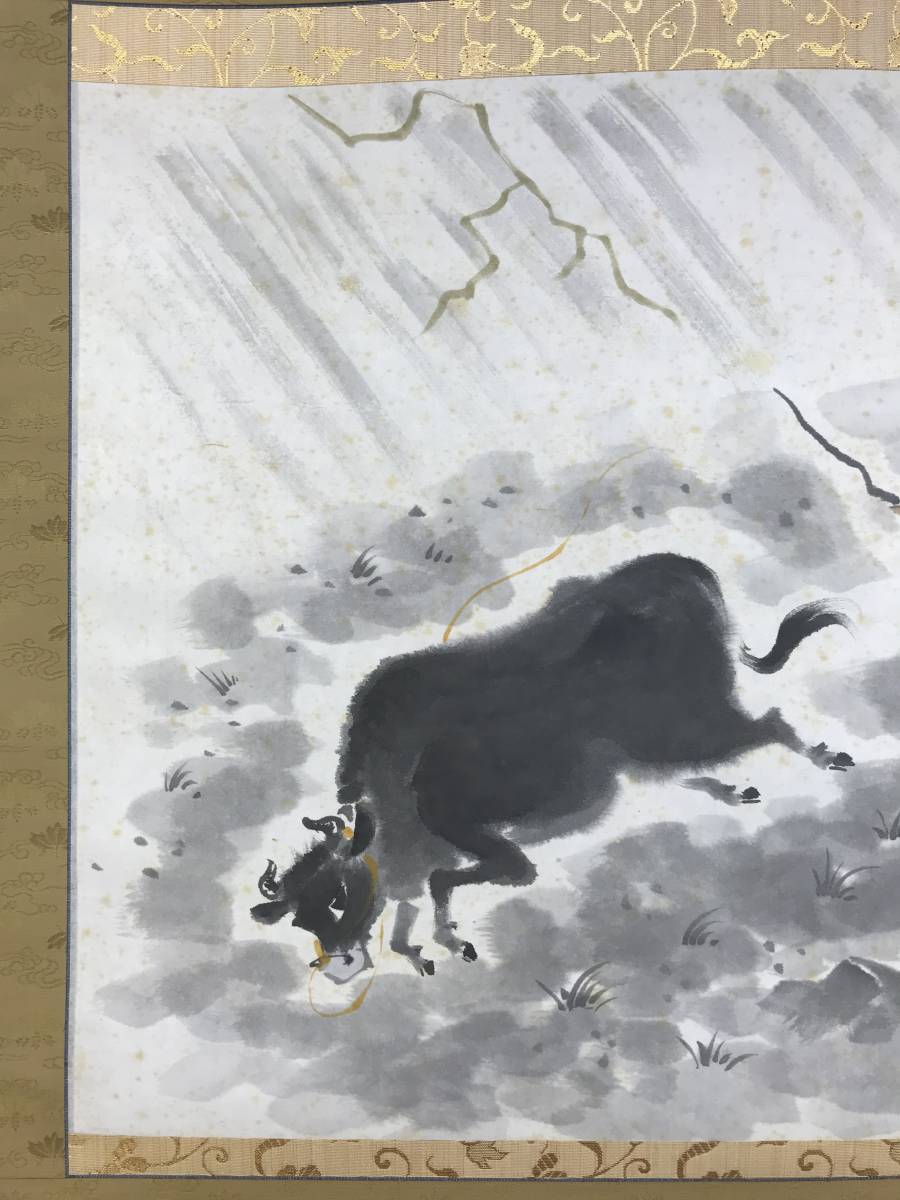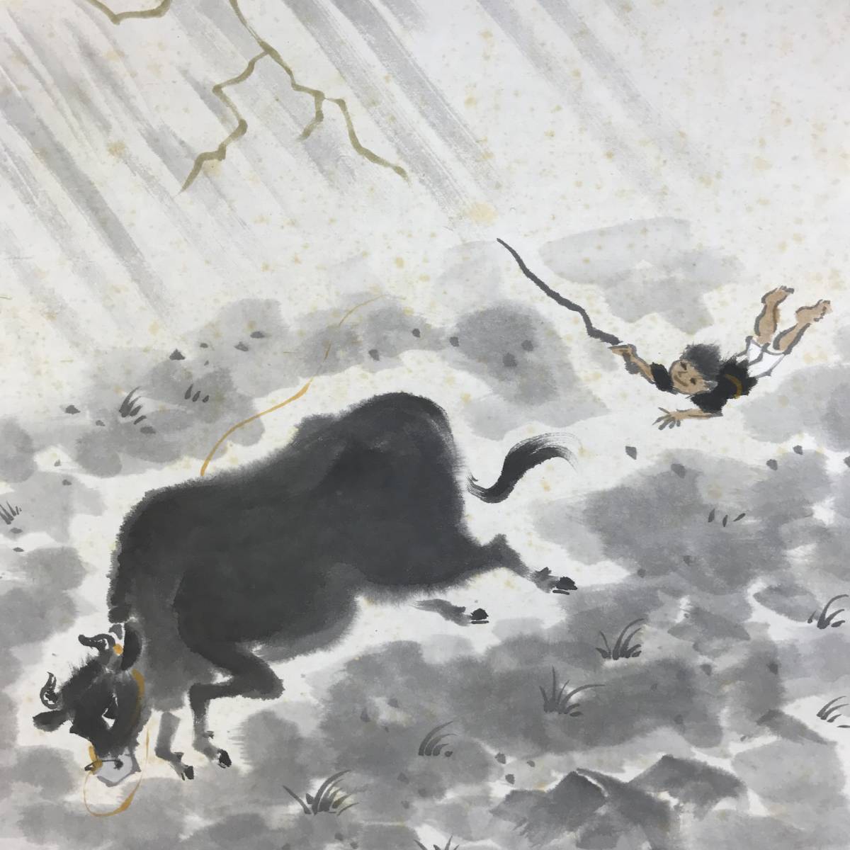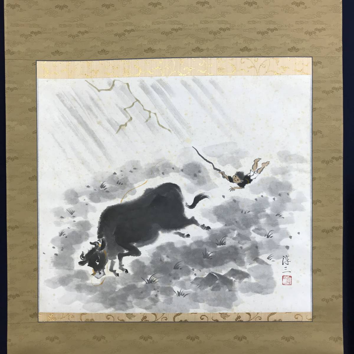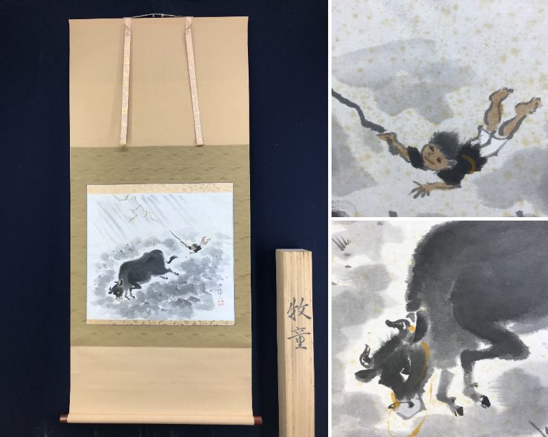 真作/四田淳三/牧童図/牛と人物図/横物//掛軸☆宝船☆AE-131