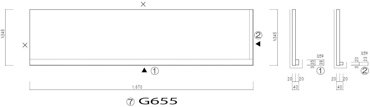 お引き取り限定★訳あり特別価格!★天然御影石カウンター★G655(本磨き)★L=1670*D=345*t=20+20の前垂れ、エプロン付★7