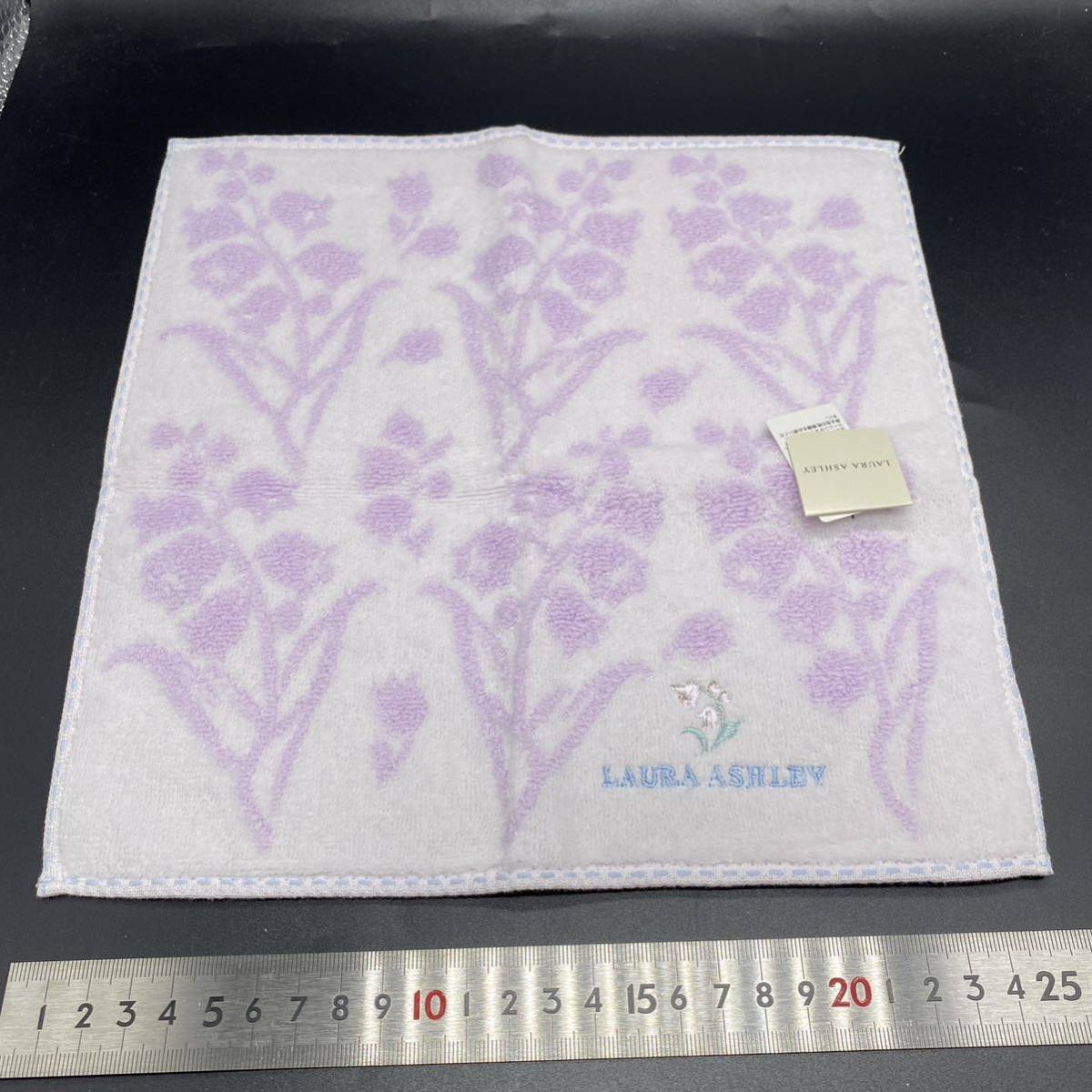 LAURA ASHLEY ローラアシュレイ タオルハンカチ  パープル 花刺 no.34