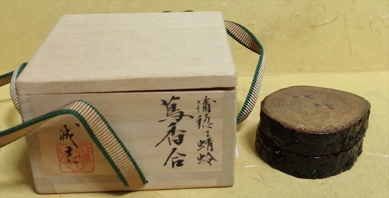 輪島塗 喜三誠志 蜻蛉香合 共箱 茶道具 本物保証 細密彫刻 仏教美術