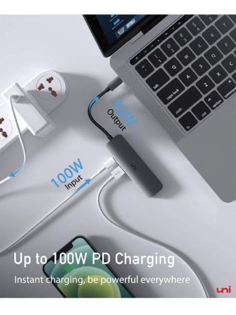 【100W高速充電】最大100Wの高速電力供給充電ポートにより、MacBook Pro/iPad Proまたはその他の互換性のあるノートパソコンを充電し、データを転送し、複数の低電力周辺機器を接続できます。 USB-Cハブを使用してマルチタスクを行う際に、バッテリーが少なくなる心配はもうありません。 実際の充電速度は、使用するデバイス、ケーブル、充電器によって異なる場合があります。 (注意: USB-C PDポートは「充電」専用で、データを転送できません。 ノートパソコンのUSB-CはPower Deliveryをサポートする必要があります)。