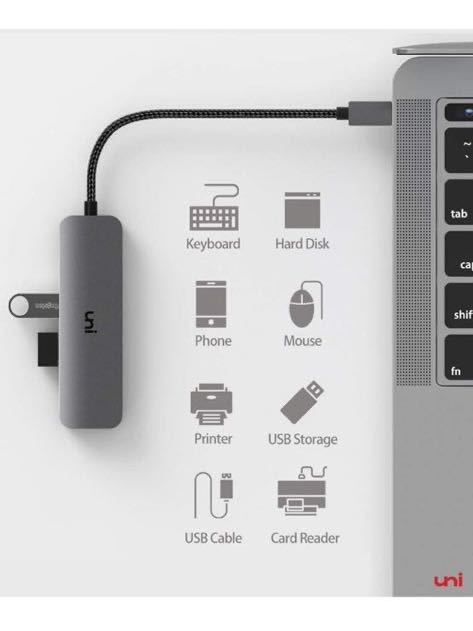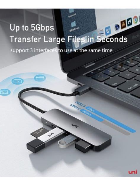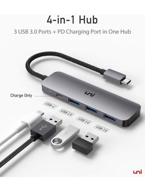 USB Cハブ、uni 4-in-1 USB Cアダプター 3つのUSB 3.0ポート付き 100W USB-C PD充電ポート Thunderbolt 3 USB Type C - USB 3.0ハブアダプター MacBook Pro、iPad Pro、XPS、Pixelbookなど用
