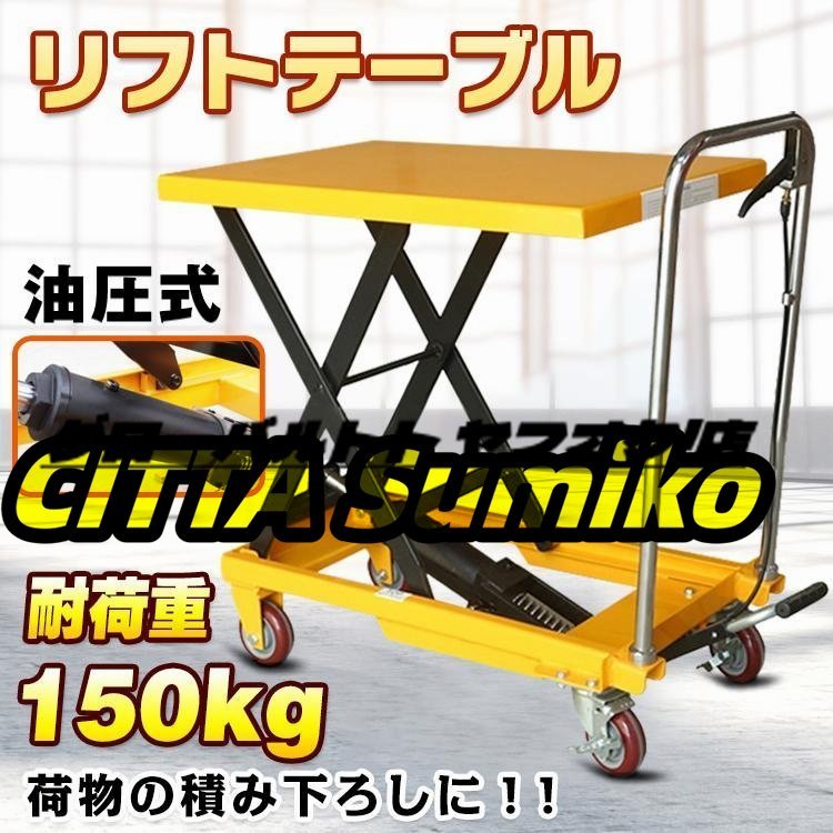 超人気★ リフトテーブル 油圧式昇降台車 油圧リフト 運搬台車 昇降台 ハンドテーブルリフト耐荷重150kg S1282
