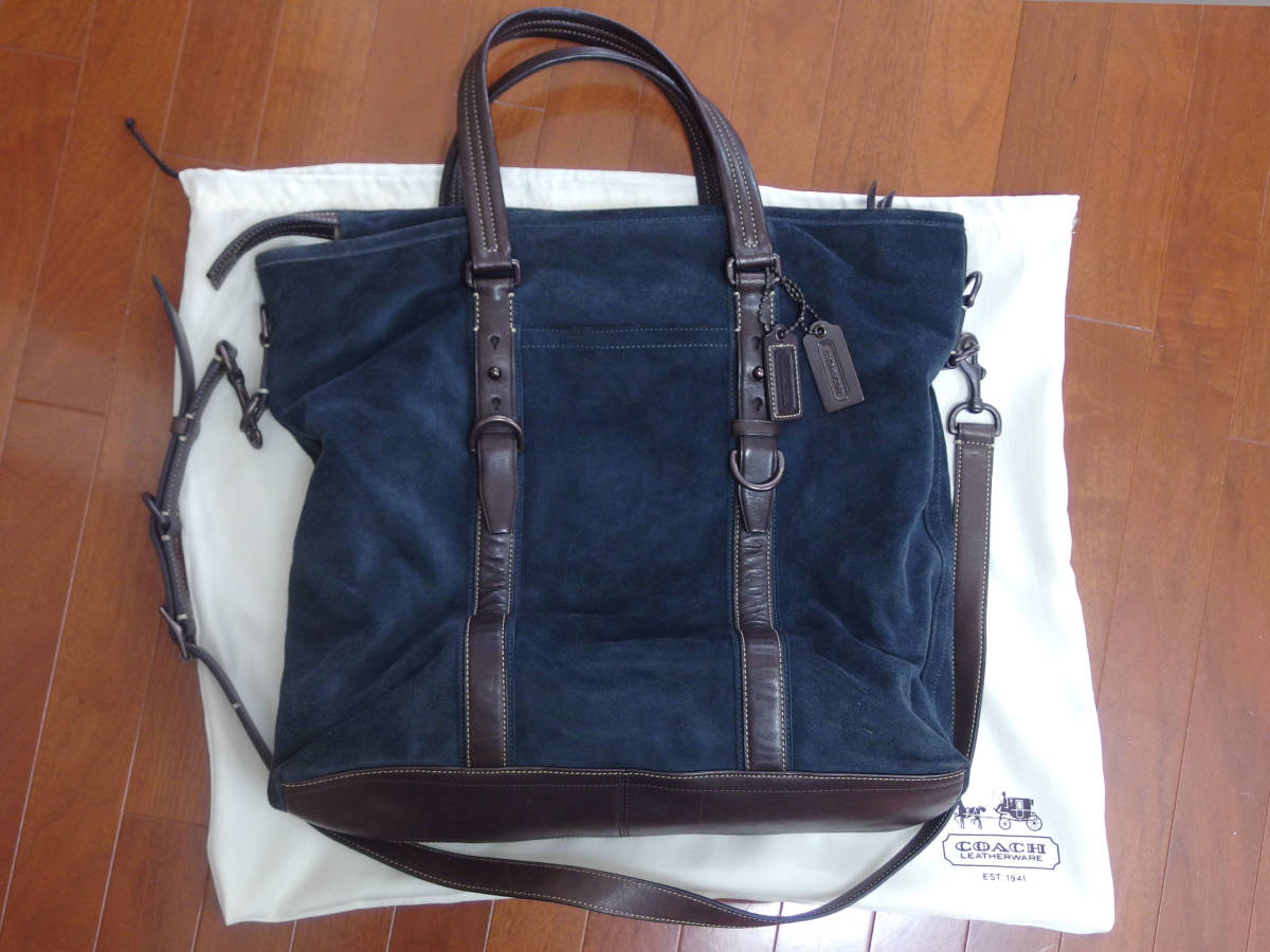 良品 コーチ ハリソン イーストウェスト トートバッグ ネイビースウェード