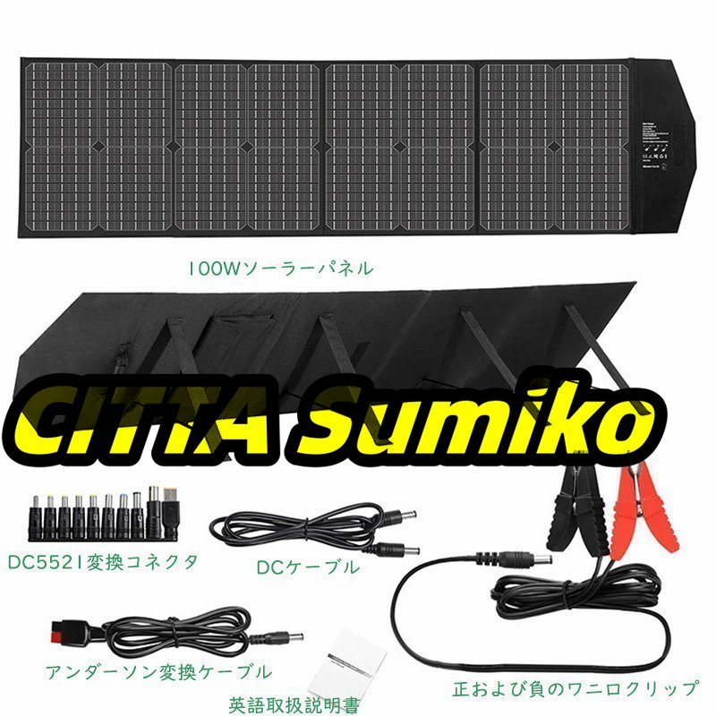 18V100Wソーラーパネル 折りたたみ式ソーラーチャージャー 高転換率 PET単結晶 太陽光パネル DC/USB出力 自動車バッテリー充電 薄型軽量