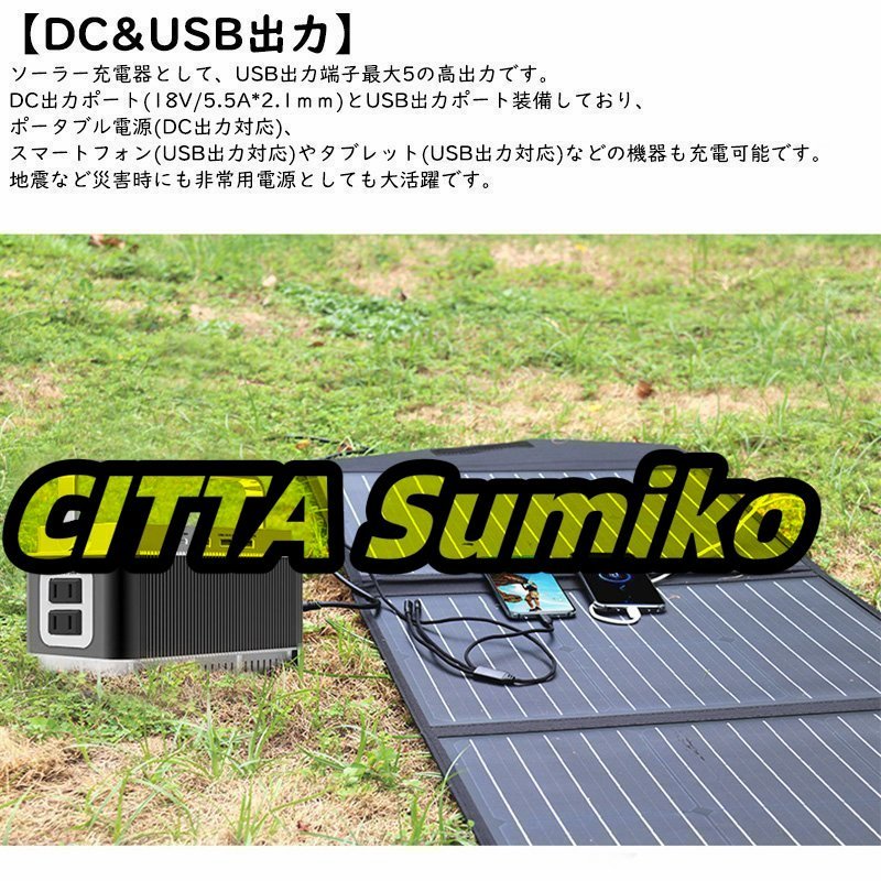 【DC&USB出力ソーラーチャージャー】ソーラー充電器として、USB出力端子最大5の高出力です。DC出力ポート(18V/5.5A*2.1mm)とUSB出力ポート装備しており、ポータブル電源(DC出力対応)、スマートフォン(USB出力対応)やタブレット(USB出力対応)などの機器も充電可能です。地震など災害時にも非常用電源としても大活躍です。※他社製品と組み合わせてご使用いただく場合は、 接続可否、動作可否に関しましては、互換性がないため推奨はしておりません。