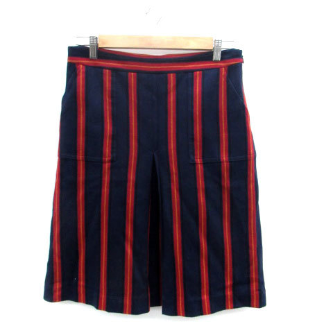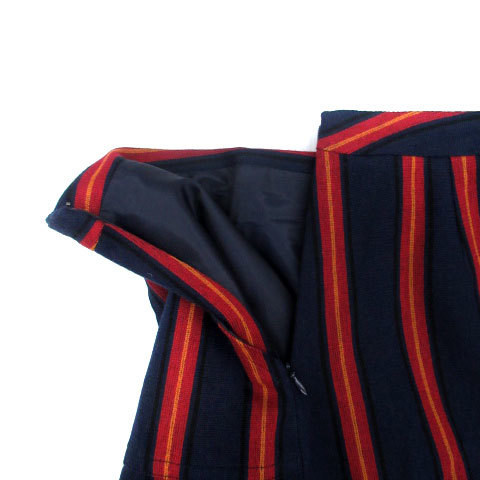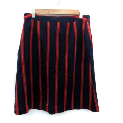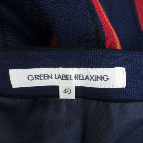 グリーンレーベルリラクシング ユナイテッドアローズ フレアスカート ミモレ丈 ストライプ柄 ウール混 40 紺 ネイビー 赤 レディース
