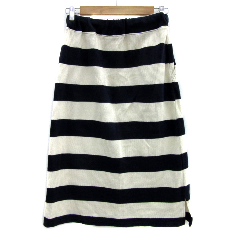 サマンサモスモス SM2 タイトスカート ニットスカート ロング丈 ボーダー柄 イージー F 白 ホワイト 紺 ネイビー /YS4 レディース