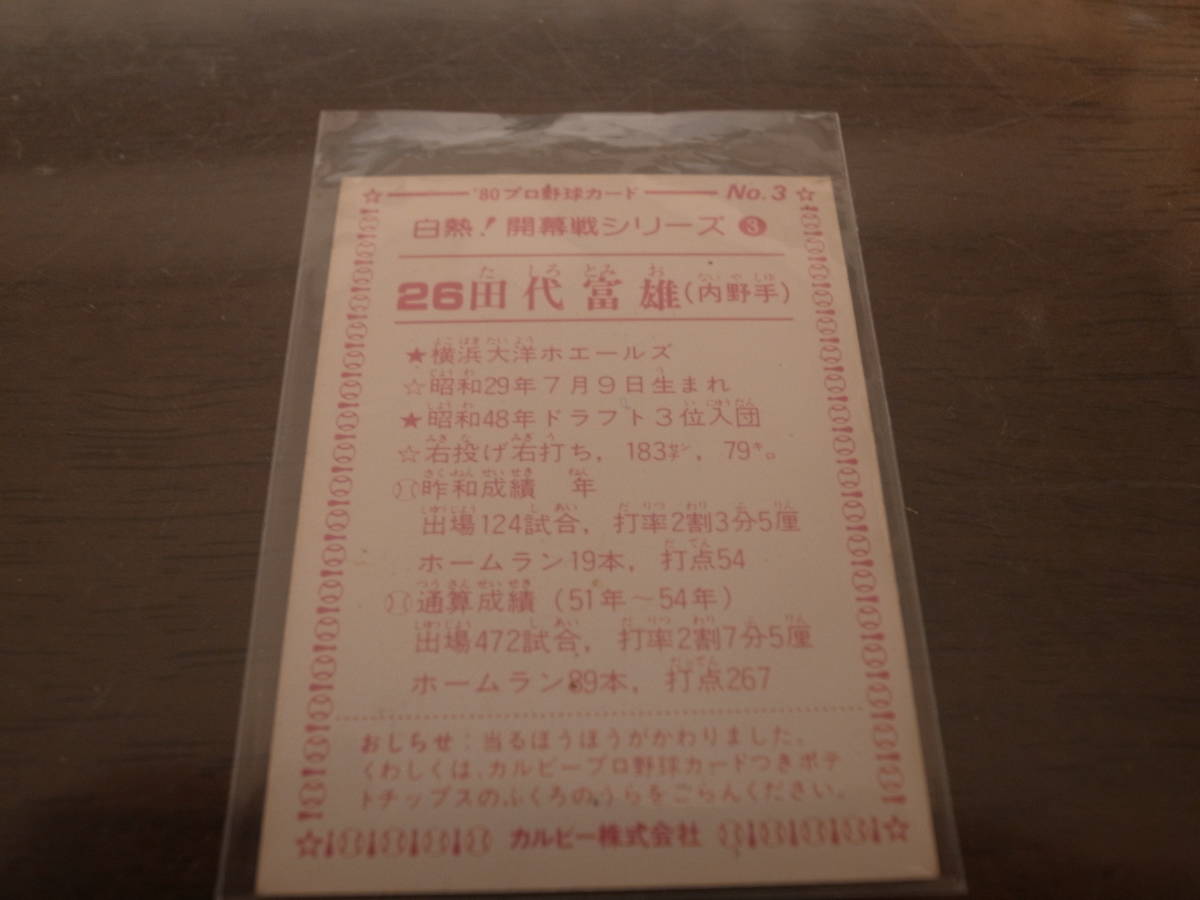 ■カルビー1980年/No3/白熱!開幕戦シリーズ/田代富雄/大洋ホエールズ | ||