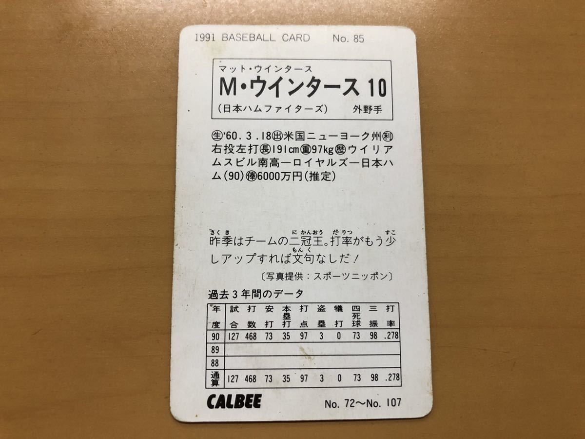 カルビープロ野球カード 1991年 マットウインタース(日本ハム) No.85
