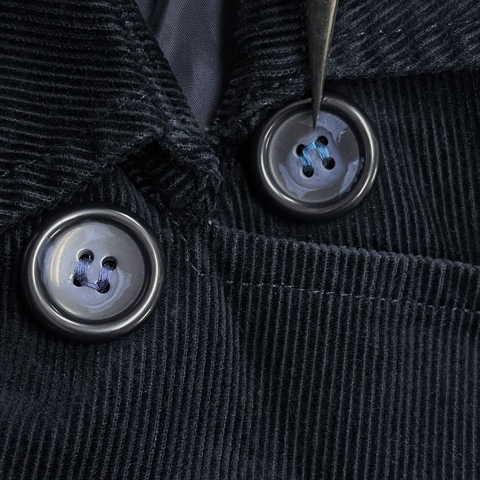 商品状態・ディテールなど | (※実測寸法など、多少の誤差はご容赦下さい。) (※商品は衣類の場合は全て畳んで保管しており、服飾雑貨も靴以外は必要に応じ畳んで保管しております。保管や梱包による畳み皺などはご了承下さい。) ●気になったダメージの場所と種類: ・所々:- ・全体:- ・肩:- ・襟:- ・胸:- ・腹部:- ・裾:- ・右袖:- ・左袖:- ・袖口:- ・背中(上):- ・背中(下):- ・内側:- ●その他ディテール:内ポケット無し ●付属品など:- ●その他:一番上の左襟近くのボタン糸の色が他のボタンと違う状態 |