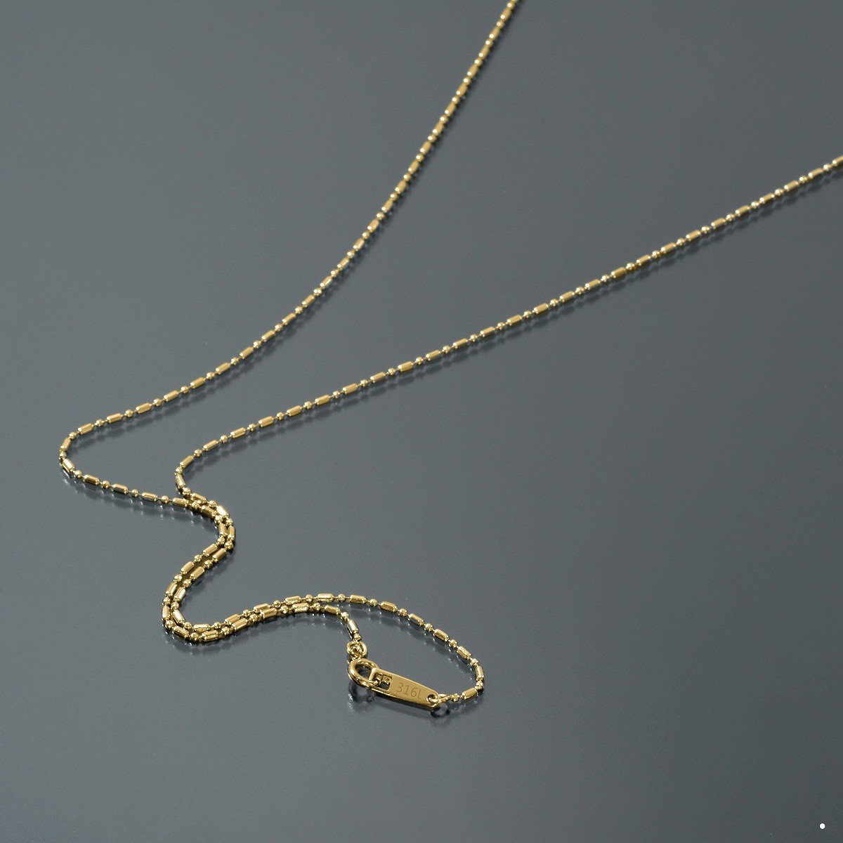 | 変形カットボールチェーンは俵型のバーとボールが交互に連なった変形ボールチェーンにカットを入れたネックレスです。棒と球のパーツが連なるので(BAR×ROUND)、BRチェーンと商品名に付いております。 ※こちらのチェーンは絡まりにくく万が一絡まってしまったとしても解きやすいデザインです。 ※イオンプレーティング(IPメッキ)とは、金属イオンと不活性ガスを反応させた化合物を製品に蒸着させるコーティングで、ガスの比率でカラーを調整します。従来の鍍金加工に比べて表面耐久性、密着性、工程の安全性が飛躍的に向上しております。 |