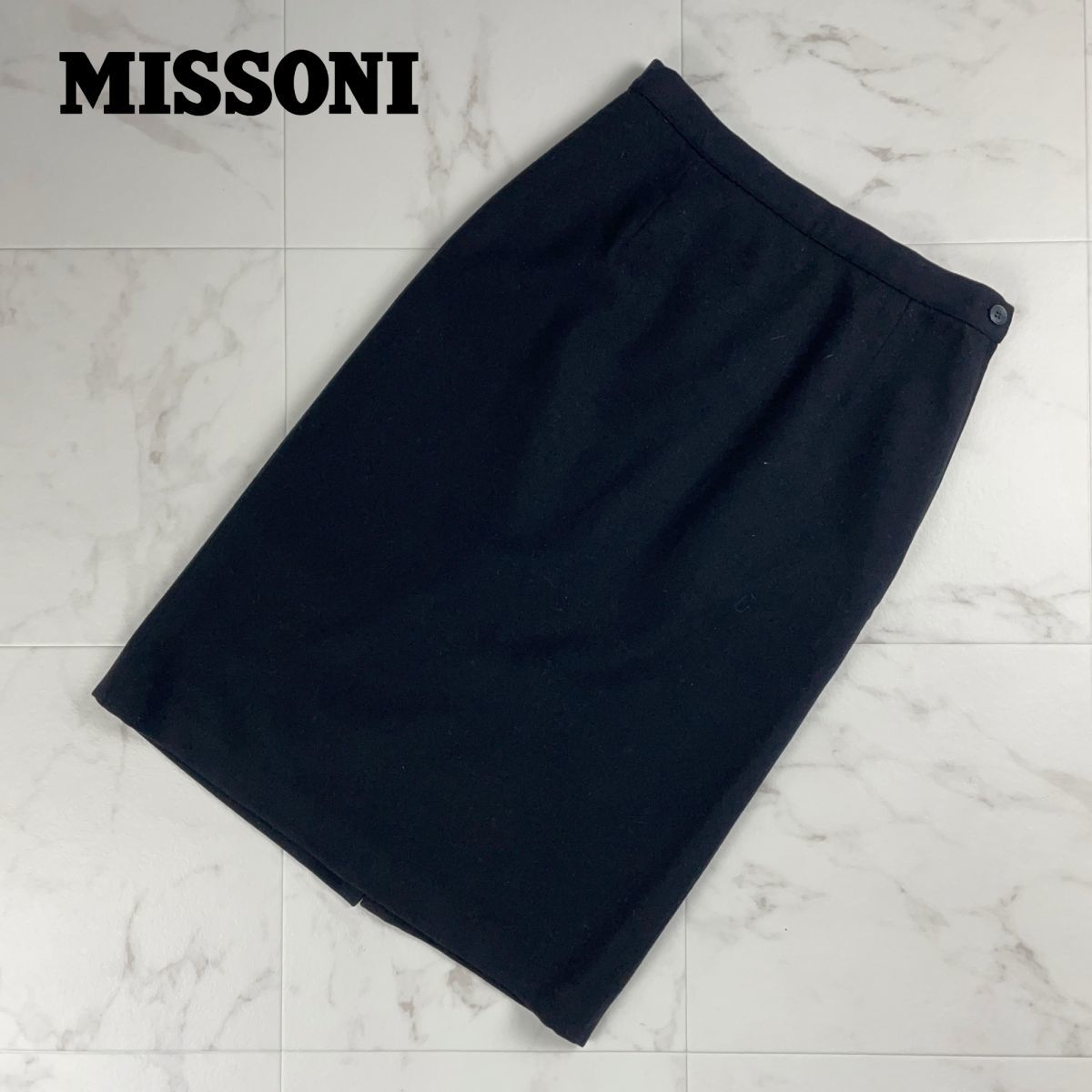 美品 MISSONI ミッソーニ ウール100% タイトスカート バックスリット 膝丈 裏地あり 黒 ブラック サイズ40*LC1224