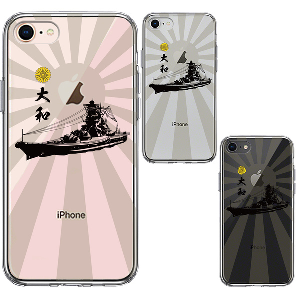 iPhone7 iPhone8 ケース クリア 大和 旭日 旭日旗 縦 スマホケース 側面ソフト 背面ハード ハイブリッド