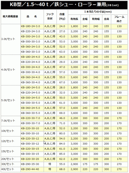 | 4.0t/セット | KB-180-24-4.0 | A,B,C,特 | 26.0 | 1,800 | 240 | 240 | 155 | 130 |