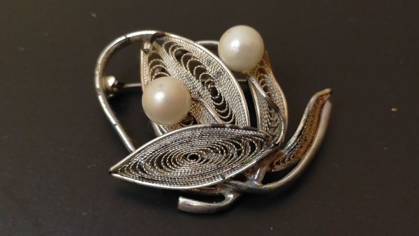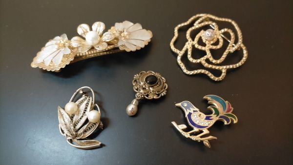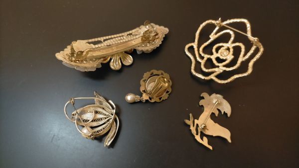 ブローチ3点、バレッタ1点、イヤリング1点の出品です。