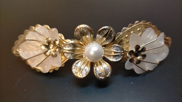 G175 ☆5点セット☆ ブローチ3点 バレッタ1点 イヤリング1点 ゴールドカラー シルバーカラー
