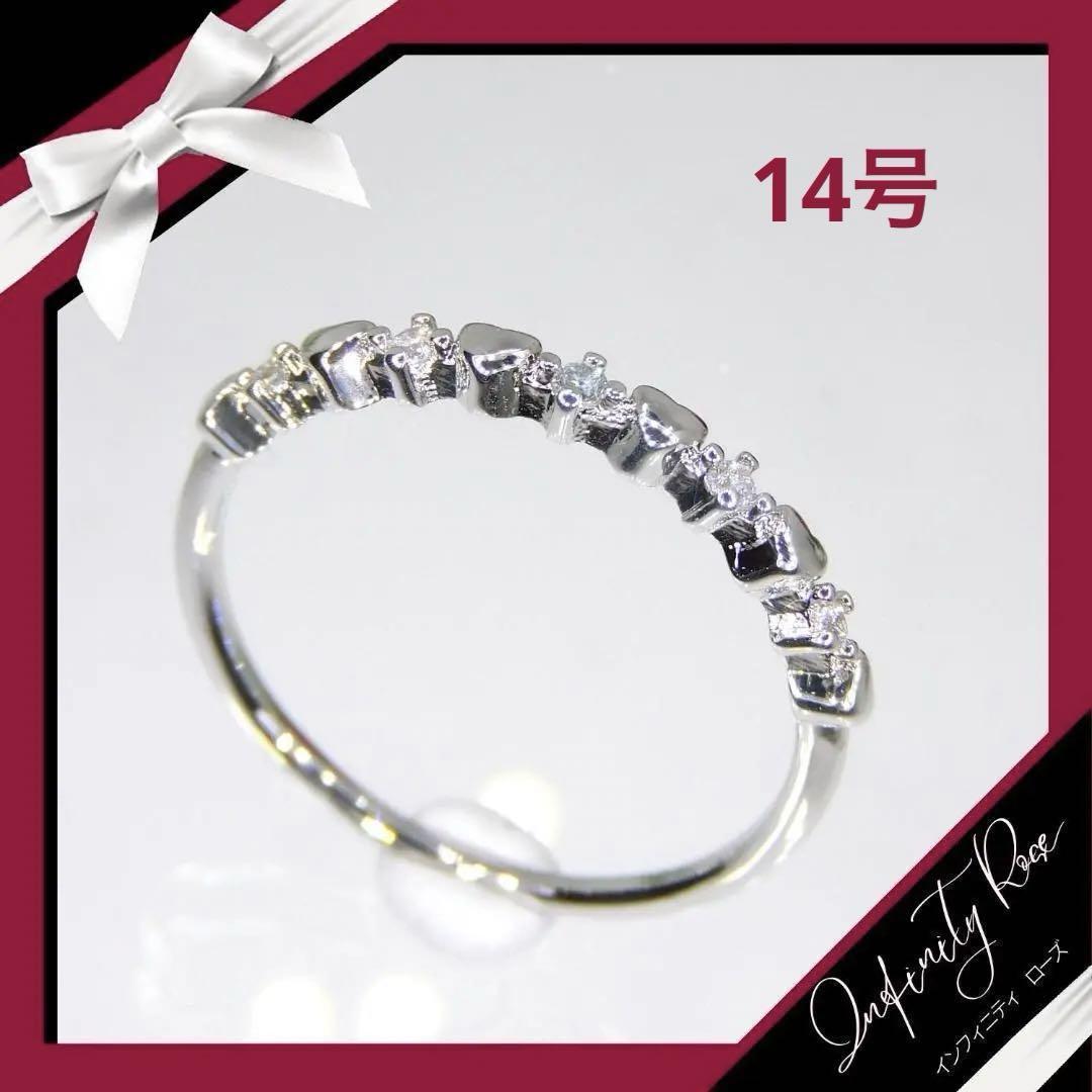 (R026S)14号 シルバー極細の可憐で清楚なハートリング 爪留め仕様