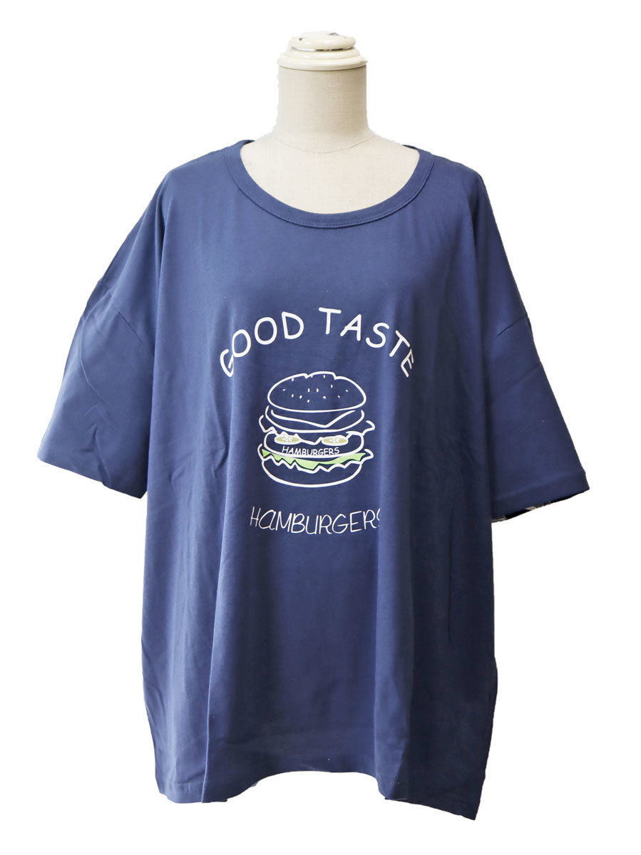 han106nm  半袖ビッグtシャツ ビックt ハンバーガー ネイビー Mサイズ レディース 新品 綿・レーヨン 未使用