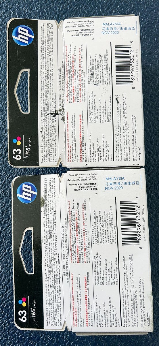 | 商品説明 | HP 純正インクカートリッジ63 2点の出品です。※箱に汚れ等が有ります、 |