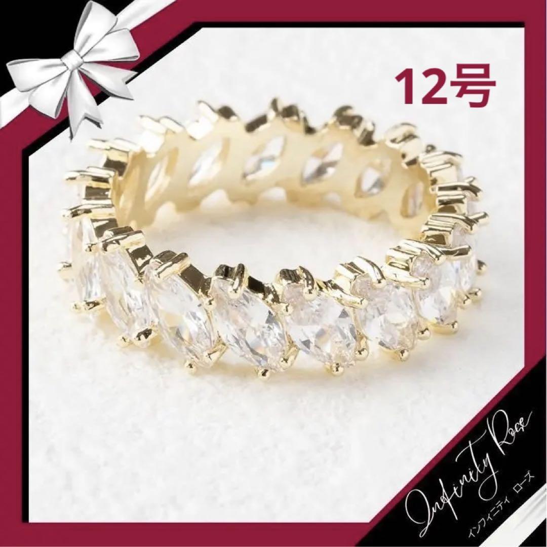 (R022G)12号 ゴールド斜めオーバル高価爪留めジルコニアリング