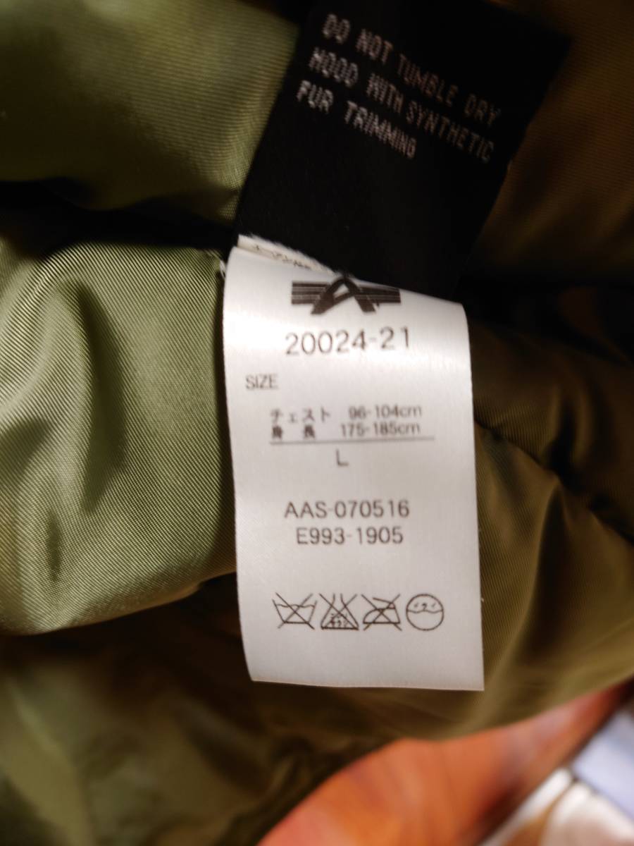 商品はアルファインダストリーズ製ジャンパーです。