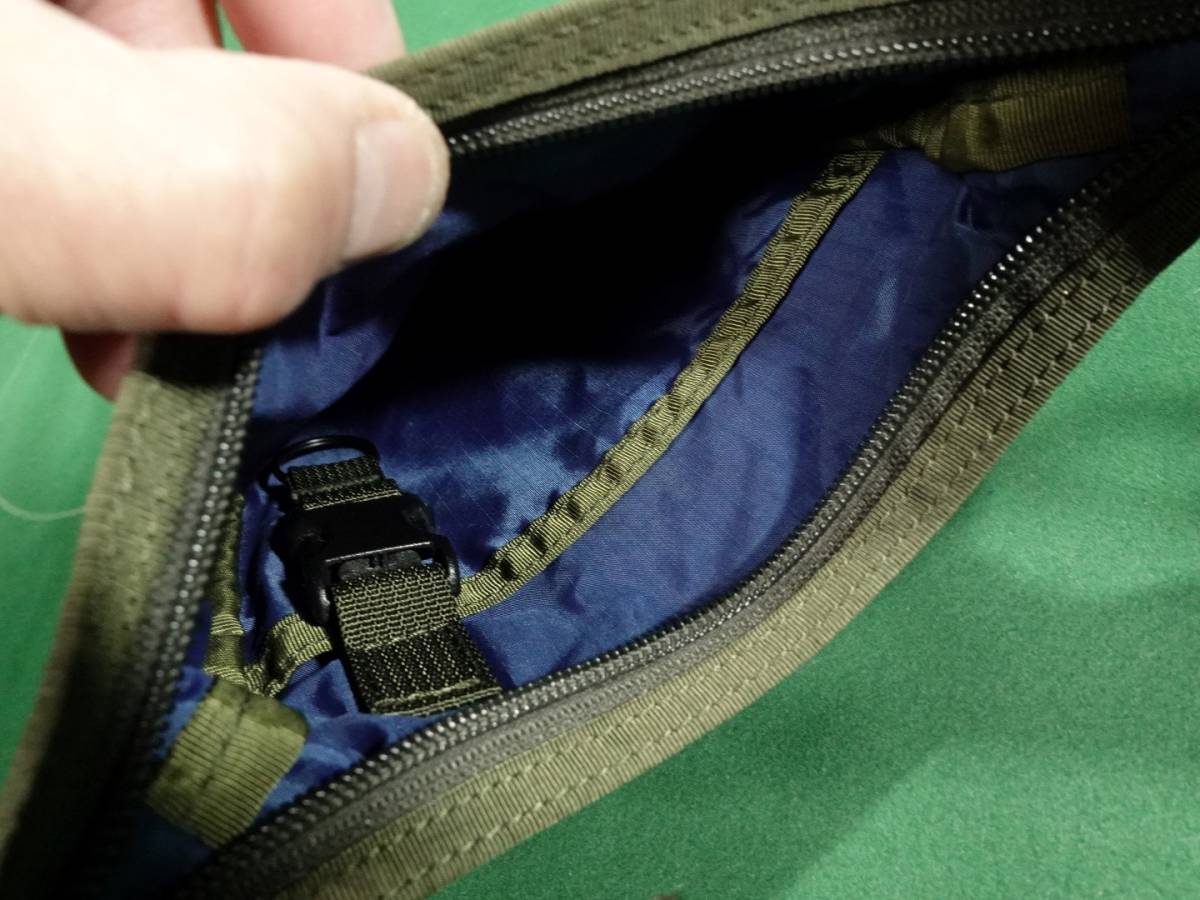 メイン室内にはスリーブポケット1つと着脱可能なキーリング1つ。