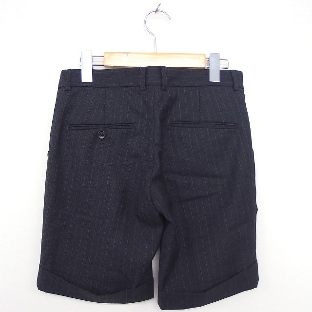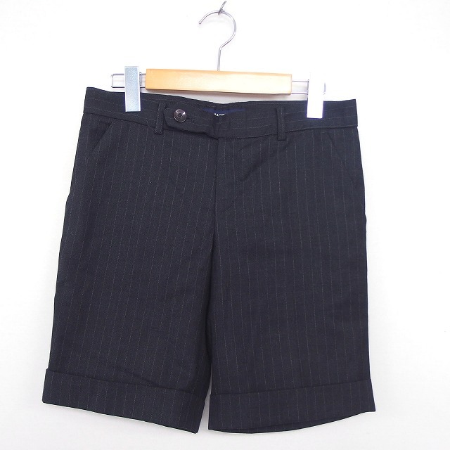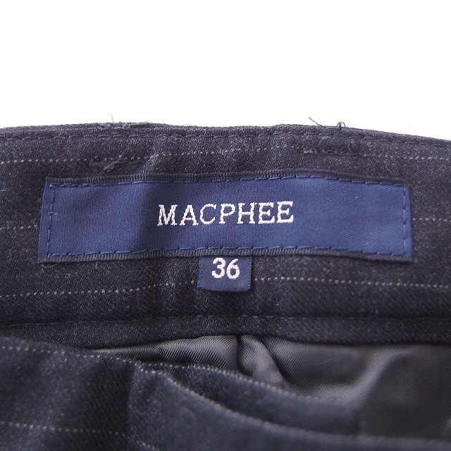 マカフィー MACPHEE トゥモローランド パンツ ハーフ丈 ストライプ 折り返し ポケット ジップフライ 36 チャコールグレー ホワイト 灰 白 /C レディース