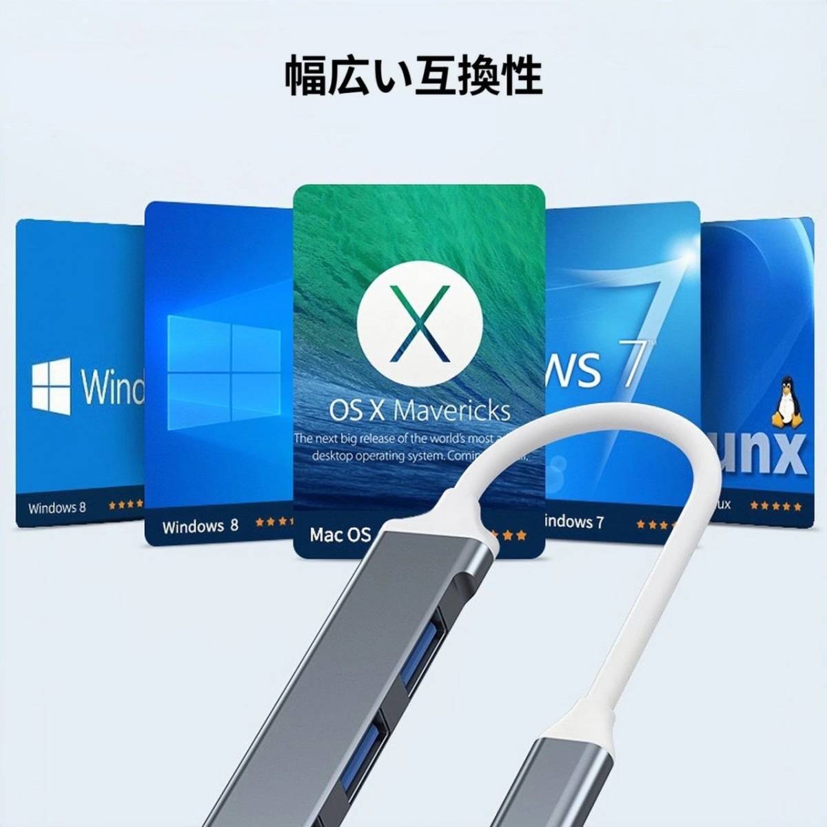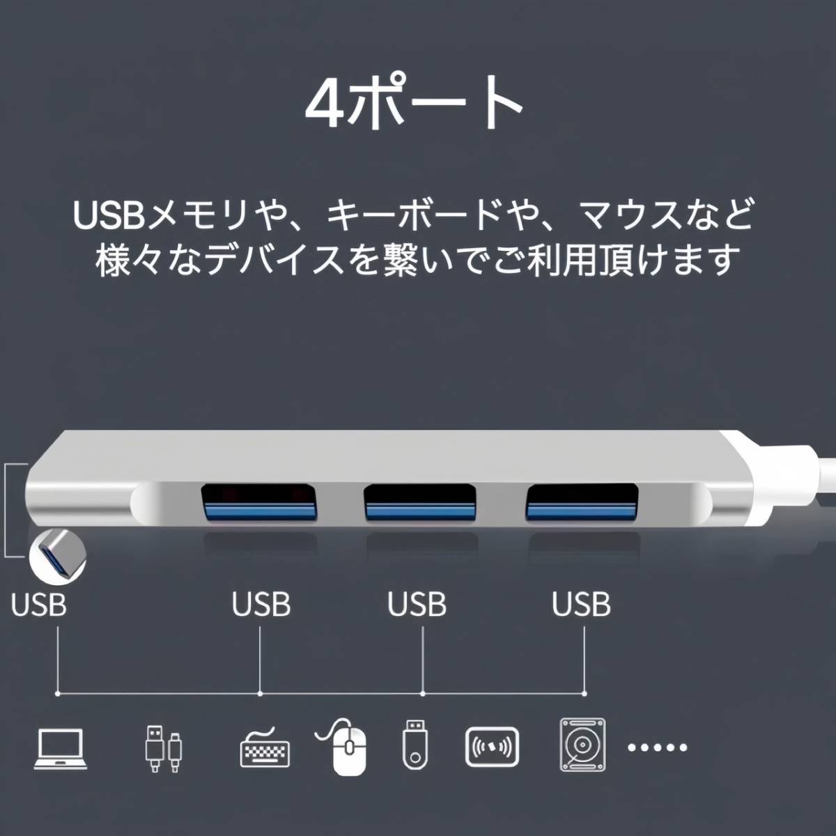 4ポート搭載!複数のUSB機器が同時に使用できます。USBハブに接続する機器に安定して電源を供給することができます。