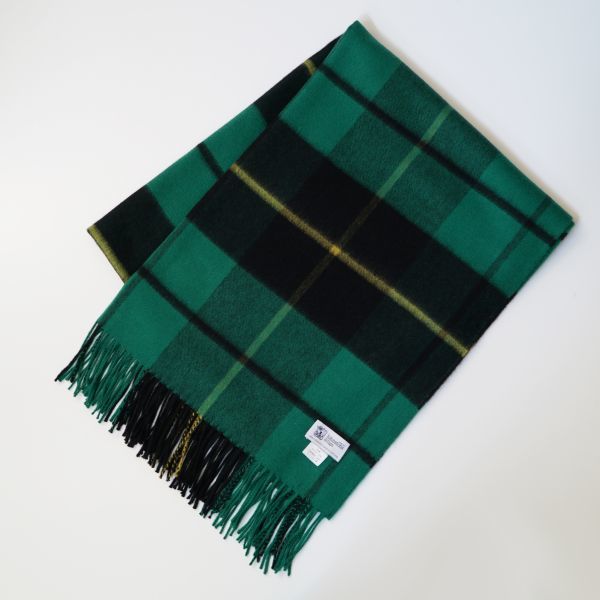 ジョンストンズ カシミヤ大判ストール 英国伝統色であるハンターグリーンをベースにしたウォレス柄。深いしっかりとしたグリーンにイエローのラインが入ります。 日本別注カラー |