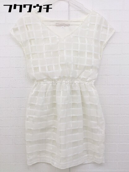 ◇ MERCURYDUO マーキュリーデュオ 総柄 切替 フレンチスリーブ ミニ ワンピース サイズF アイボリー系 レディース