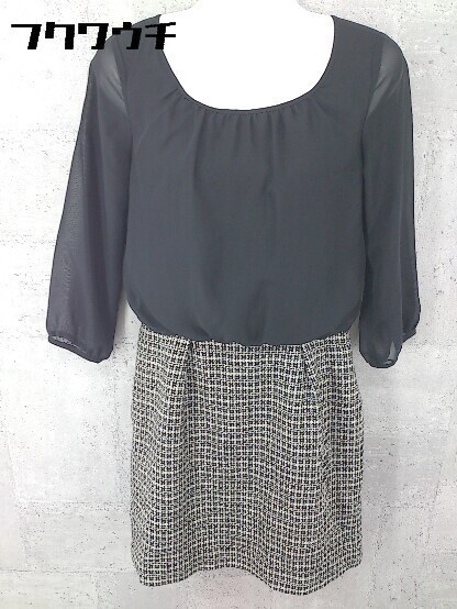 ◇ NATURAL BEAUTY BASIC ナチュラルビューティーベーシック 長袖 ミニ ワンピース サイズS ブラック ベージュ レディース