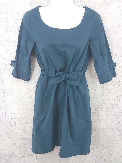 ◇ BEAMS LIGHTS ビームス ライツ 七分袖 膝丈 ワンピース 38 グリーン系 レディース