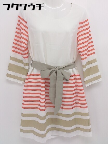 ◇ ◎ B:MING by BEAMS ビーミング 七分袖 膝丈 ワンピース サイズONE オフホワイト ベージュ オレンジ レディース