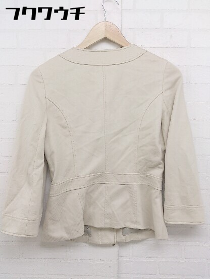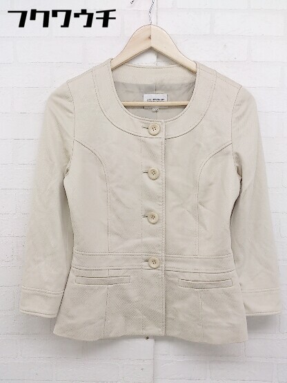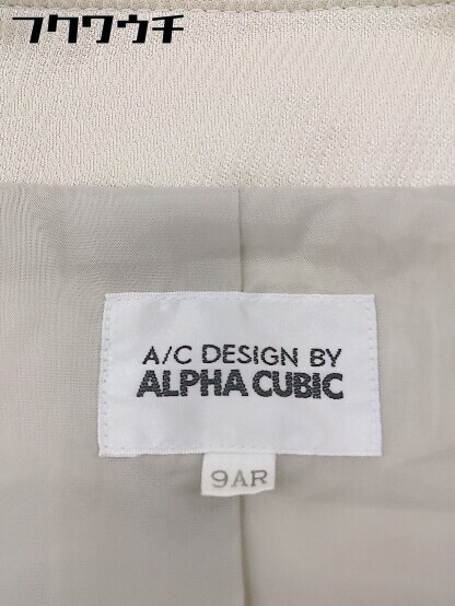 ◇ ALPHA CUBIC アルファキュービック 長袖 ノーカラー ジャケット サイズ9 ベージュ レディース