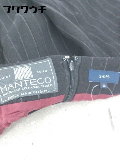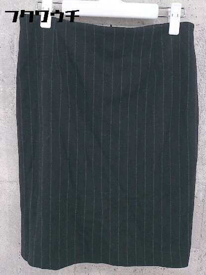 ◇ SHIPS シップス バックジップ ストライプ 膝丈 スカート サイズ38 ブラック レディース