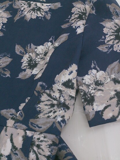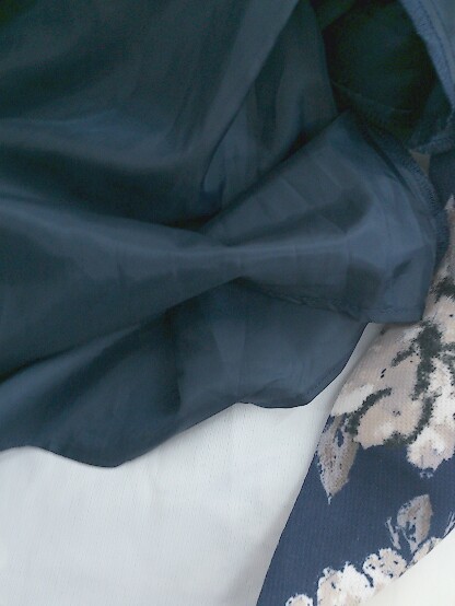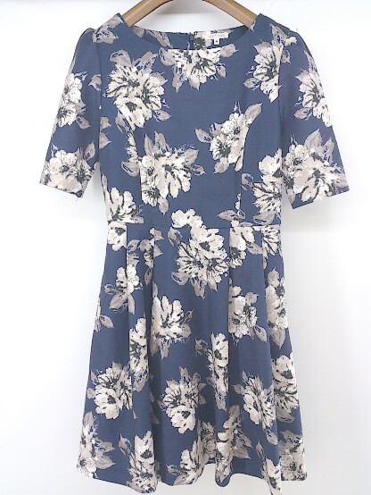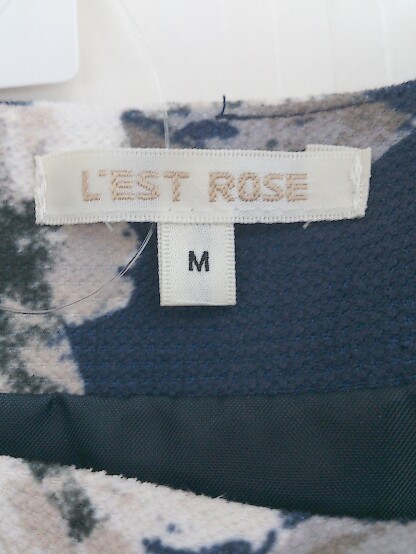 ◇ L'EST ROSE レストローズ 総柄 半袖 ミニ ワンピース サイズM ネイビー ベージュ レディース P