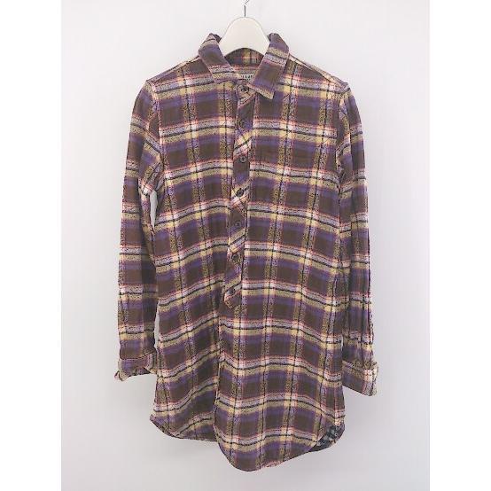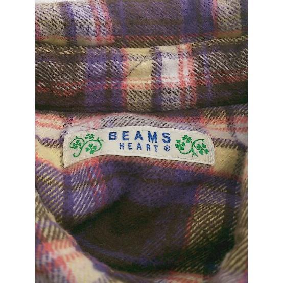 ◇ BEAMS HEART ビームス ハート チェック コットン 長袖 シャツ サイズF ブラウン パープル ベージュ レディース P