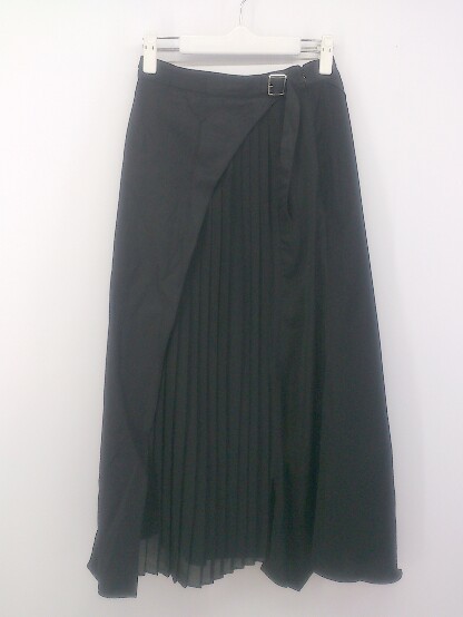 ◇ PAGEBOY ページボーイ ALICIA アシメ ラップ巻き風 プリーツ ロング フレア スカート サイズF ブラック レディース P