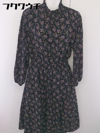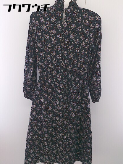 ◇ continuer de NICE CLAUP 花柄 フラワー 長袖 ロング ワンピース サイズF ブラック マルチ レディース