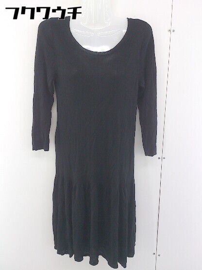 ◇ green label relaxing ング UNITED ARROWS 七分袖 膝丈 ニットワンピース サイズONE ブラック レディース