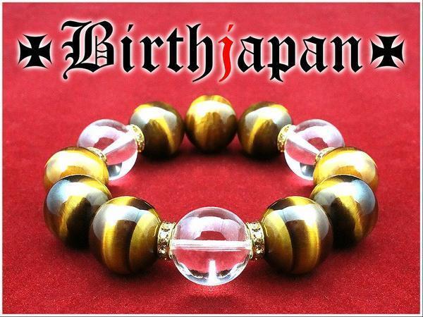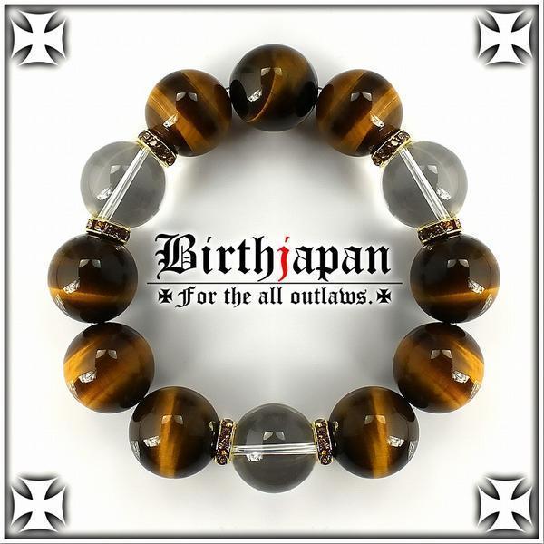 20mm/ロンデル×虎目石タイガーアイ/水晶数珠ブレスレットヤクザ